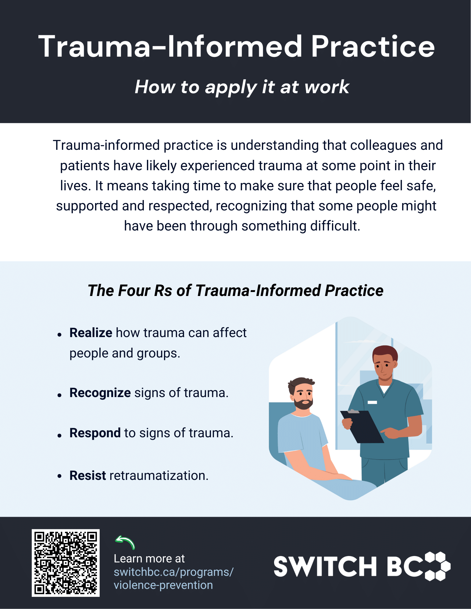 Updated violence prevention training includes learning about trauma-informed practice (TIP). Review these prompts on how to apply TIP at work: